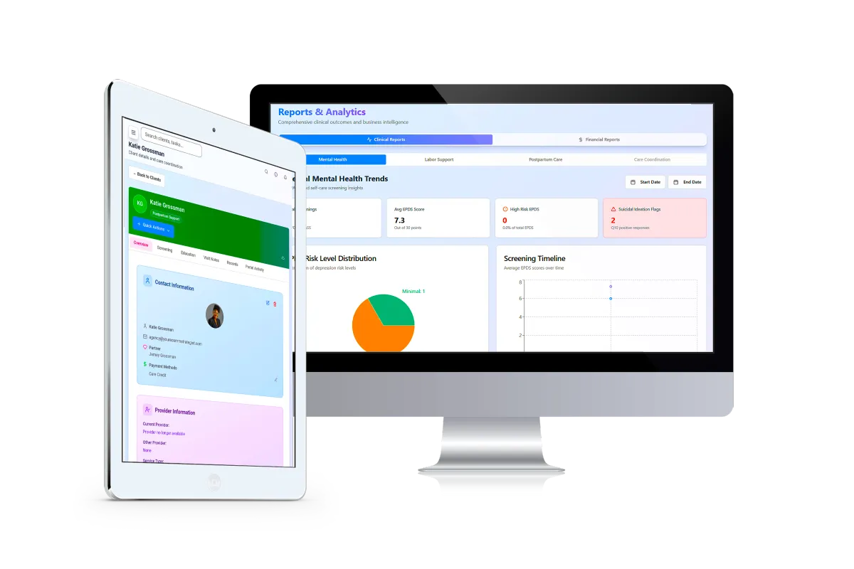 Customized BirthSync Setup: We map and tailor your workflows—from intake to visit logs to postpartum follow-up—ensuring your care model is supported by technology that reflects the heart of your service.